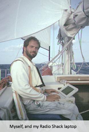 Other than cosmetic copy-editing, the story as presented here is the original as written during the journey on my trusty old Radio Shack laptop. It had no “hard drive”—only 3½” 1.44 megabyte (MB) floppy disks to store data (it takes more than 60 floppy disks to hold one minute of HD video), the operating system was in memory, and the black and white display panel wasn’t lit at all. Because of this, the battery lasted a good long time the display and was very to see in direct sunlight. But it wasn’t easy to work with in dark places or at night, thus the need for some later corrections.