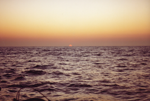 Well, of course, this is what I came for, and I couldn’t expect much better. No beer/wine/etc., clean out the system, good food, and of course the dolphins of Wednesday night... hundreds (no exaggeration) of dolphins, sounding like waves breaking at the seashore, splashing around in every direction. And the sunset that night, with the lobster boat blaring a great rock song (the wheel in the sky keeps on turning), the open ocean, it was a great experience. That night, sailing into the murk, I was scared and elated—at the helm of a good ship, good people, with Spain somewhere over the bow, and a moonset turning everything into a dream....