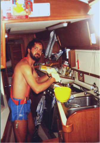 Bob Bucannan (known here as BoB), a “retired at age 45 successful former owner of a travel agency” from Phoenix. We spent many evenings talking about life in general. He was planning to buy a boat, this was a practice run for him. Was never on the ocean until this trip, but he had sailed a lake during a storm. Took courses on Diesel mechanics and celestial navigation before the trip. Good singing voice. BoB got married as an indirect result of this trip: Through Herman and our first Mardi Gras in Louisiana, he met a lady named Ruby and married her.